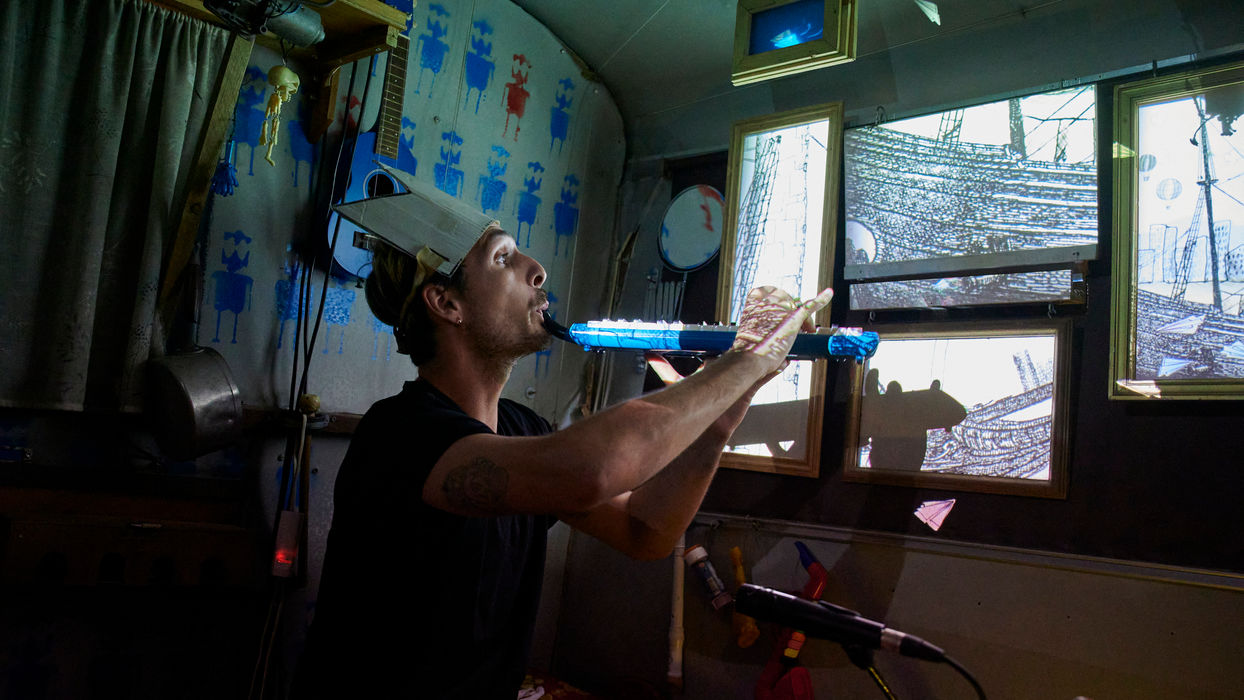 Dans un micro-cinéma, un musicien vous propose de suivre le voyage d’une femme à travers un film d’animation. En explorant des dispositifs mécaniques singuliers et en jonglant avec divers instruments ou objets sonores improbables, il fabrique la musique du film devant vous et vous plonge dans une étonnante aventure onirique de laquelle vous ne ressortirez pas indemne. Il paraîtrait que les personnages s’échappent même de l’écran pour étendre le champ de votre imagination...